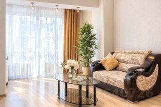 В комнате: шикарная 2-х спальная кровать с ортопедическим матрасом, прикроватные тумбочки, комод, современная стенка, жк тв., 2-х спальный угловой диван, журнальный столик. Кухня: встроенный современный гарнитур, столовая группа (стол и 4 стула).
