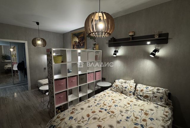 В квартире есть встроенные шкафы с зеркальными дверками, не нужно приобретать дополнительную мебель.