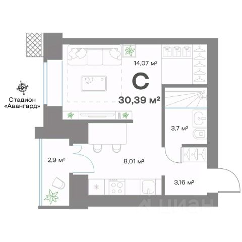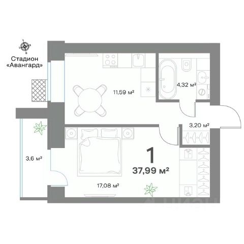 Район отличается удобной транспортной доступностью: в 5 минутах ходьбы находится остановка с маршрутами в центр города и к крупным торговым центрам. В пешей доступности — супермаркеты, аптеки, отделения банков, салоны красоты и кафе. В радиусе 10-15 минут ходьбы расположены детские сады, школы и поликлиника, что делает квартиру привлекательной для молодых семей. Дом находится в тихом дворе без интенсивного автомобильного движения, при этом в шаговой доступности есть парковая зона для прогулок.