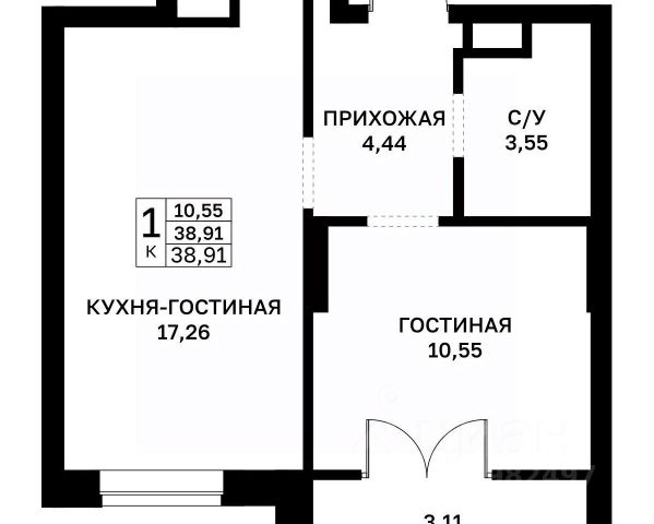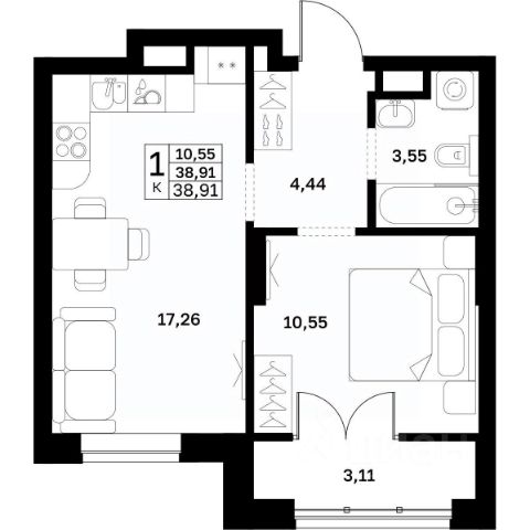 • ✅ Объект наибольшей площади: 55,1 м²