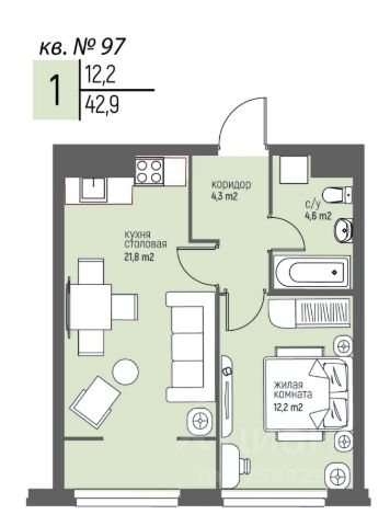 • ✅ Минимальная площадь: 21,2 м²
