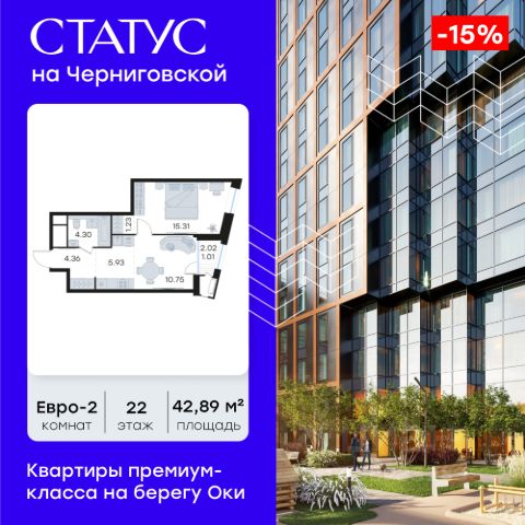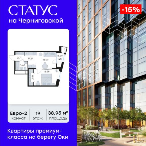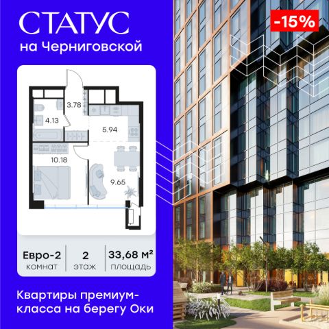 Продается 1-комн. квартира на 9-м этаже в строящемся проекте премиум-класса СТАТУС на Черниговской. Общая площадь лота составляет 39,69 кв. м, из которых 11,70 кв. м отведено под жилую и 16,18 кв. м под кухонную зону. Номер квартиры - 309. Преимущества квартиры: С лоджией - Квартиры премиум-класса у воды - Первая береговая линия. Изумительные виды на Стрелку и слияние Оки и Волги - Панорамные окна во всех квартирах - 11 минут до Кремля, 5 мин до Нижневолжской набережной - Дизайнерские лобби со вторым светом - Двухуровневый отапливаемый паркинг на 350 м\м - Приватный благоустроенный двор с видеонаблюдением только для резидентов - Современные детские площадки, зоны спокойного отдыха, зона для занятия спортом, зеленые кабинеты на свежем воздухе - Детские сады и школы в шаговой доступности - Собственный комьюнити-центр с коворкингом, детской комнатой, залом для фитнеса и кофе-поинтом. - Умный Дом и Умная Квартира - Ресторанный кластер в ЖК - Келлеры для хранения - Коммерческие помещения на 1 этаже СТАТУС на Черниговской - новый жилой комплекс премиум-класса в историческом центре Нижнего Новгорода, в котором объединились лаконичность архитектурной мысли, технологичность решений и внимание к деталям, присущее всем проектам компании GloraX. Проект для рационалистов, придающих большое внимание собственному комфорту и современным технологиям СТАТУС на Черниговской - это высшая форма Нижнего Новгорода. Инновационные решения и сервисы, закрытые дворы в стилобате с уютными детскими площадками, гастро-кластер, комьюнити-центр и дизайнерские лобби здесь все создано для максимального комфорта каждого жителя. Приватное пространство внутреннего двора с тактильными тропами, с собственным садами, камерными зелеными кабинетами для работы и отдыха, детскими площадками для разных возрастов и местами для занятия спортом создает неповторимую атмосферу безмятежности и спокойствия. СТАТУС на Черниговской возвращает набережной и пространству вокруг исторический статус, привлекая тех, кто готов развиваться вместе с городом. Дорога до любимейшего променада нижегородцев Нижне-Волжской набережной займет всего 10 минут пешком, до ближайшей станции метро Горьковская 10 минут на автомобиле. Попасть на главную площадь города, Чкаловскую лестницу и в Кремль на машине за 11 мин? Легко! И всего 48 минут займет путь до международного аэропорта имени Чкалова, что станет неоспоримым преимуществом для тех, кто часто летает в командировки. В проекте СТАТУС на Черниговской доступен широкий выбор планировочных решений от небольших уютных студий площадью 28,3 м2 до двухуровневых квартир с террасами площадью до 188,7 м2 и потрясающими видами на Нижегородские закаты. Все квартиры сдаются в черновой отделке, что позволяет нашим резидентам воплотить в своем доме любую дизайнерскую идею. Цена указана при 100% оплате или стандартной ипотеке. Узнайте подробности в Отделе продаж. 1-комнатная квартира в ипотеку в микрорайоне Центр в городе Нижний Новгород.