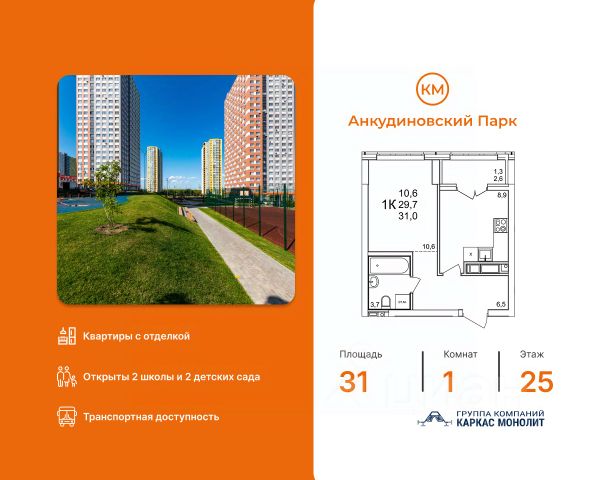 Жилой комплекс "КМ Анкудиновский парк" - это проект группы компаний "Каркас Монолит", которая начала свою деятельность на рынке недвижимости в 2000 году.