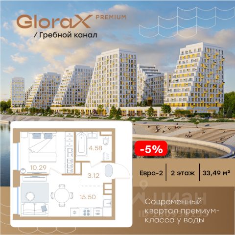 Продается 1-комн. квартира на 2-м этаже в строящемся проекте премиум-класса GloraX Premium Гребной канал. Общая площадь лота составляет 33,49 кв. м, из которых 10,29 кв. м отведено под жилую и 15,50 кв. м под кухонную зону. Номер квартиры - 289. Преимущества квартиры: евро-двухкомнатная квартира; вид на улицу - Современная набережная с философией Slow-life, зонами медитации и амфитеатром у воды - Гастрокластер с акцентом на здоровое питание - Общественный центр со спортзалом, бассейном и супермаркетом - Детский плейхаб с нетиповыми площадками - Близость к центру города - Отапливаемые паркинги - Дизайнерское гранд-лобби со вторым светом и клубом резидентов - Приватные дворы на стилобате - Окна в пол - Умные замки с возможностью открытия двери с помощью отпечатка пальца или кода GloraX Premium Гребной канал — это курортный Нижний. Современные кварталы премиум-класса у воды недалеко от центра города с философией slow-life. Концентрация на настоящем, забота о собственном физическом и ментальном здоровье, соблюдение баланса между трудом и отдыхом. Инфраструктура для активной и здоровой жизни, модный гастрокластер с особыми программами питания. Маловысотные дома с видами на реку и с фасадами в виде парусов. А рядом - многофункциональная набережная с променадом, зонами для медитации и йоги, упирающаяся в любимейшую пляжную зону всех нижегородцев и во все века прекрасная река. Гармоничная среда, дающая возможность услышать свой внутренний голос, понять свои истинные желания и чувства. GloraX Premium Гребной канал — это семейный Нижний. Два детских сада, школа, нетиповые детские площадки для разных возрастов. Экологичные материалы. Безопасность и видеонаблюдение. Простор для прогулок на многоуровневой набережной, велодорожки и релакс-зоны. Сложно представить лучше жизнь ваших детей. GloraX Premium Гребной канал это эксклюзивный Нижний с современной средой, в которой решения и внимание к деталям подчеркивают высокий статус и индивидуальность жителей. Приватные дворы на стилобатах, безбарьерная среда, IP домофоны, просмотр камер с домофона через мобильное приложение, системы "Умный ЖК" и отапливаемые паркинги. Дизайнерское гранд-лобби со вторым светом и клубом резидентов. Общественный центр сj спортзалом, бассейном, супермаркетом, кафе и рестораном. GloraX Premium Гребной канал это не координаты на карте, а внутреннее состояние. Идеальным оно становится тогда, когда все вокруг работает на ваше благополучие. GloraX Premium Гребной канал вырос в месте, на набережной Гребного канала, где Волга простирается вдоль горизонта, а из окон будущих резидентов открывается панорама на великолепие зеленых зон. А главное — всего 9 минут до центра Нижнего Новгорода и Кремля на авто. Редкое сочетание близости к деловой жизни города в атмосфере уединенного курорта. Рядом 2 остановки общественного транспорта, вертолетная площадка и речной вокзал. До международного аэропорта им. Чкалова 50 мин на авто. Цена указана при 100% оплате или стандартной ипотеке. Узнайте по