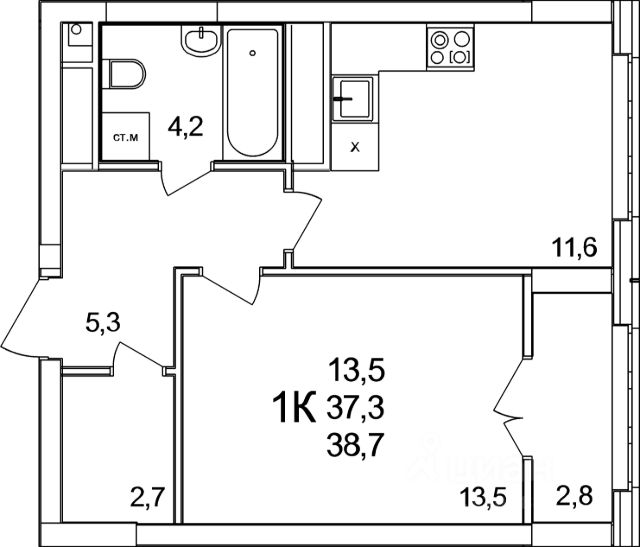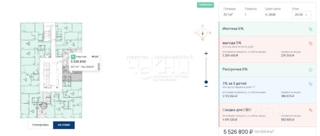 Продаётся 1-комнатная квартира в строящемся доме (53), срок сдачи: III-кв. 2027, общей площадью 29.7 кв.м., на 2 этаже. Расположение, транспортная доступность