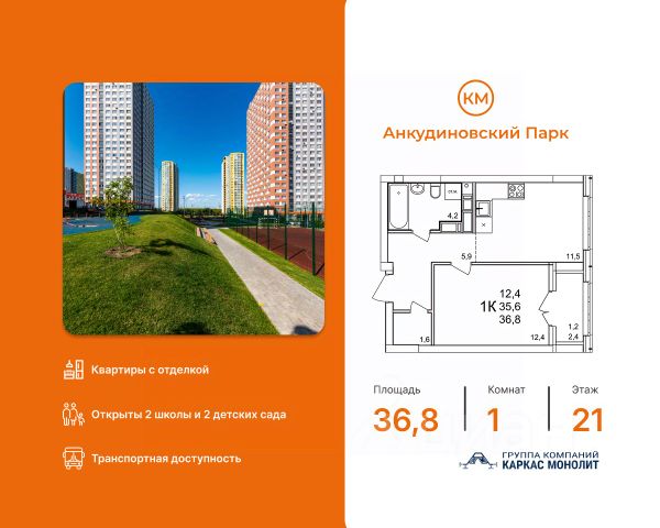 Жилой комплекс "КМ Анкудиновский парк" - это проект группы компаний "Каркас Монолит", которая начала свою деятельность на рынке недвижимости в 2000 году.