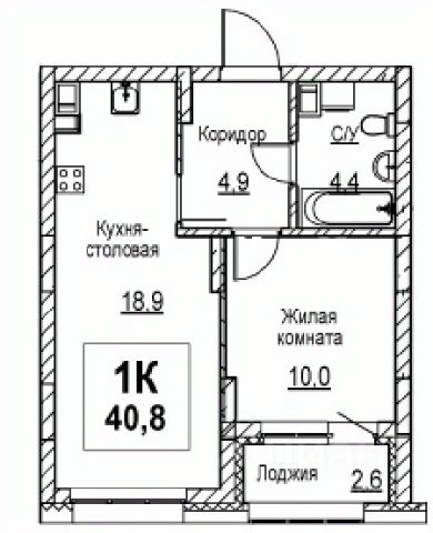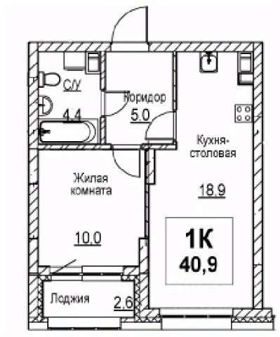 Продаётся 1-комнатная квартира в строящемся доме (Корпус 1), срок сдачи: I-кв. 2028, общей площадью 40.9 кв.м., на 4 этаже.