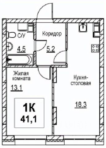 Продаётся 1-комнатная квартира в строящемся доме (Корпус 1), срок сдачи: I-кв. 2028, общей площадью 41.1 кв.м., на 3 этаже.