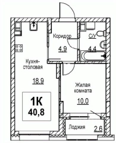 Продаётся 1-комнатная квартира в строящемся доме (Корпус 1), срок сдачи: I-кв. 2028, общей площадью 40.8 кв.м., на 3 этаже.