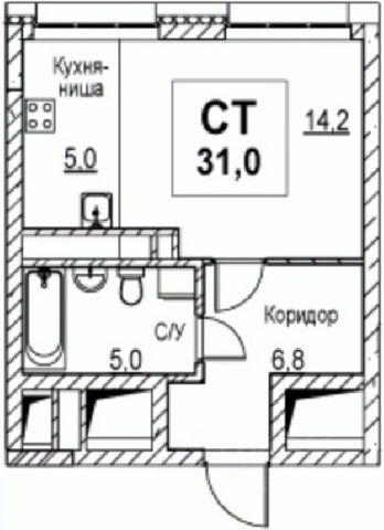 Продаётся 1-комнатная квартира в строящемся доме (Корпус 1), срок сдачи: I-кв. 2028, общей площадью 31 кв.м., на 8 этаже.