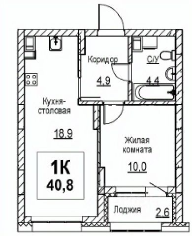 Продаётся 1-комнатная квартира в строящемся доме (Корпус 1), срок сдачи: I-кв. 2028, общей площадью 40.8 кв.м., на 3 этаже.