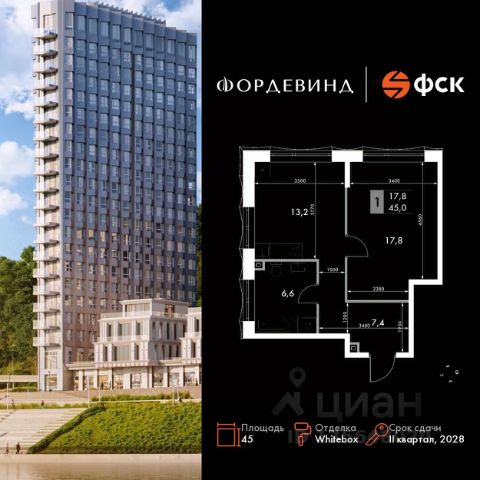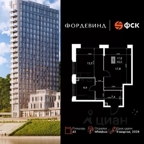 Прямая продажа от застройщика! Продаётся 1-к квартира номер 224 общей площадью 45 кв.м. на 7-м этаже 16 этажного здания. Отделка Whitebox. Цена с учётом скидки. Особенности квартиры: - Угловая планировка - больше пространства для ваших идей. - Окно в ванной - натуральное освещение для уюта и комфорта. - Увеличенное количество окон - дополнительное освещение и свежий воздух. - Просторная ванная - место для расслабления и уединения. Квартира с предчистовой отделкой (White box). Вам не придется заниматься черновыми и трудоёмкими работы, а чистовую отделку и дизайн - сделайте на свой вкус. Информация о комплексе: ЖК "Фордевинд" - новый стандарт жизни в Нижнем Новгороде. Расположенный на улице Черниговской, комплекс бизнес-класса "Фордевинд" станет ярким архитектурным акцентом города. Здесь сочетаются инновационные технологии и проверенные традиции: современный дизайн, качественные материалы и виды, вдохновляющие каждый день. Проект гармонично вписывается в природный ландшафт, задавая новый ориентир комфорта и эстетики. Внутренняя инфраструктура: Пространство, где всё продумано до мелочей. Комплекс объединяет шесть корпусов переменной этажности - от 3 до 20 этажей, что позволяет выбрать формат жилья по своему ритму жизни. В проекте представлены квартиры площадью от 27 до 237,9 м², включая эксклюзивные пентхаусы и урбан-виллы с собственными террасами и панорамными окнами. Для удобства жителей предусмотрен подземный паркинг, колясочные помещения и благоустроенные дворы с озеленением. Территория комплекса продумана для прогулок и отдыха, а особое внимание уделено видам: квартиры ориентированы на живописные пейзажи и закаты над рекой, к которой организован безбарьерный доступ.