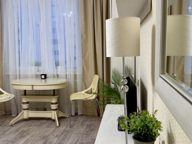 Дизайн квартиры выполнен в светлых , неброских тонах. Сделан качественный ремонт: выровнены стены, на полу уложен ламинат, потолки натяжные, новые межкомнатные двери. Санузел в кафеле , установлена полноценная ванная.