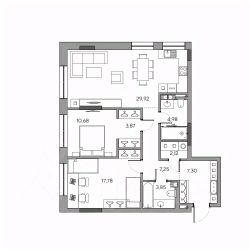 Продаётся 2-комнатная квартира в строящемся доме (дом 1), срок сдачи: III-кв. 2026, общей площадью 88.39 кв.м., на 2 этаже. Жилой комплекс премиум-класса "Приоритет" на улице Грузинская - это исключительная возможность жить в историческом центре Нижнего Новгорода. Фасады здания выходят непосредственно в сквер имени Свердлова и к театру "Комедiя". Жилой комплекс расположен в старейшем районе города, насыщенном атмосферой истории, искусства и светской жизни. Соседствуя с ключевыми культурными и бизнес-точками города, "Приоритет" дает вам возможность всегда быть в центре событий. Рестораны и театры, парки и скверы, бизнес-центры и офисы - все лучшее уже здесь. Особый статус проекта подчёркивают современные архитектурные решения: лаконичные фасады здания, архитектурная подсветка и дизайн мест общего пользования. На первом этаже находится двухсветное лобби, выполненное по дизайнерскому проекту. В отделке интерьеров широко используются натуральные материалы. Сочетание мрамора, дерева и больших зеркал создают невероятно красивый ансамбль. На шести этажах располагаются квартиры свободной планировки с увеличенной высотой потолков и панорамным остеклением. Никаких ограничений в планировании пространства! Закрытый двор, видеонаблюдение на каждом этаже и комната охраны обеспечивают высокий уровень приватности и безопасности жителей и гостей комплекса. На двух подземных этажах располагается большой паркинг со станциями зарядки электромобилей, а также сити-боксы для хранения вещей. Поселиться в историческом центре в нескольких шагах от сквера имени Свердлова - уникальная возможность и привилегия для жителей большого города. Купить 2-комнатную квартиру площадью примерно 90 м2 (кв.м.) в Нижнем Новгороде.