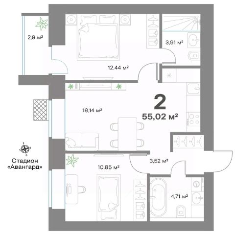 Время выбирать — столичный комфорт прямо в Выксе! Жилой комплекс "Ботаника парк" состоит из трех кирпичных домов, два из которых уже сданы и заселены. Закрытая дворовая территория обеспечивает безопасное пространство для отдыха детей и взрослых, а дети всех возрастов найдут себе занятие по душе на лучшей детской площадке в городе. Дворы и входные группы расположены на одном уровне — нет ступенек, пандусов и лишних препятствий, что позволяет без труда передвигаться маленьким жителям жилого комплекса, их родителям с колясками и пожилым людям. Чистые и светлые подъезды с дизайнерским ремонтом создают приятное впечатление с порога. Для удобства жителей предусмотрены помещения для хранения велосипедов, колясок и спортинвентаря. В каждом подъезде расположены по 2 лифта. Каждая планировка — для жизни. Все площади используются максимально эффективно, в квартирах есть: просторные кухни и гостиные, ниши для шкафов, просторные коридоры, гардеробные и постирочные комнаты. Все квартиры сдаются в улучшенной базовой отделке, которая включает в себя полусухую стяжку, гипсовую штукатурку и разводку электрики. Есть возможность заказать отделку "стандарт" и "премиум", а платеж легко оформить в ипотеку. Оба варианта включают полный набор для комфортного старта: сантехника в санузлах и на кухне, розетки и выключатели, натяжные потолки и межкомнатные двери. В "стандарте" — практичный линолеум и обои, в "премиуме" — стильный ламинат и обои под покраску. Жилой комплекс "Ботаника парк" прекрасно подойдет для тех, кто предпочитает сочетание комфорта и технологичности современной квартиры с уютом природы и небольшого города вокруг. Адрес: город Выкса (Нижегородская область) Высота: 8 этажей Материал: кирпич Высота потолков: 2,8 м Квартиры: 164 квартиры во второй очереди Площадь: 8 537 кв.м жилья во второй очереди Продается 2-комнатная квартира на 1 этаже в Выксе.