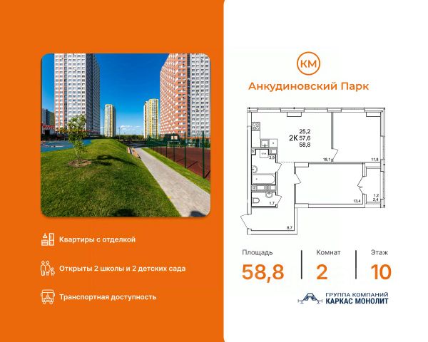 Продаётся 2-комн. квартира площадью 58,7 кв.м на 10 этаже 25 этажного дома (Корпус 10, Секция 1) проекта ПИК Савин парк. Светлый просторный подъезд на уровне земли, функциональная планировка, большие окна, c отделкой. Жилой квартал "Савин парк" возводится в Кстовском муниципальном районе, рядом с Советским районом Нижнего Новгорода. До центра Нижнего Новгорода всего 20 минут на автомобиле, а до города Кстово - 18 минут. В этом проекте есть всё для комфортной жизни. Кроме жилых домов, проект включает два детских сада, один из которых уже строится, школу и многоуровневые надземные паркинги. На первых этажах откроются кафе, магазины и другие сервисы - чтобы купить кофе к завтраку или пиццу на ужин, можно будет просто спуститься на лифте. На подземном этаже появятся кладовые, в которых удобно хранить крупные и сезонные вещи. Чтобы жители квартала чувствовали простор и получали больше солнечного света, мы построим дома разной высоты. Во дворах появятся уютные парки с детскими площадками и местами для отдыха - здесь можно поболтать с соседями, почитать в тени или позаниматься йогой. Спортивные площадки мы разместим так, чтобы шум от них не мешал жителям. В квартирах тоже будет много солнечного света за счёт балконов и больших окон. Вы получите ключи от квартиры с уже готовой отделкой - можно заезжать и жить. На машине от "Савин парка" можно доехать до ТРЦ "МЕГА" за 7 минут, за 14 минут - до Анкудиновского леса, а за 20 - до "Щёлоковского хутора". Артикул 970107 (Застройщик ООО "СЗ "Экострой")