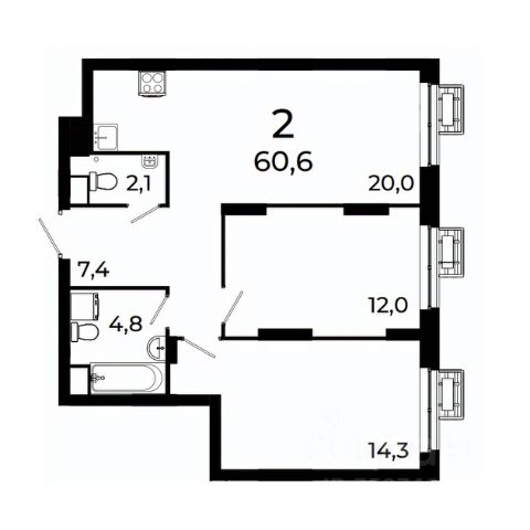 3-комнатная квартира евроформата, 78,85 кв.м. При проектировании планировочных решений в ЖК "2Д Федосеенко" мы исходили из сценариев жизни современной семьи.