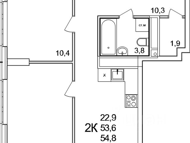 - Водоснабжение — установлены стояки для подключения сантехники, установлены счетчики учета холодной и горячей воды;