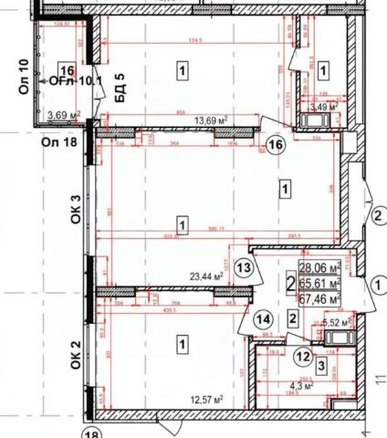 - Балкон — 3,14 кв.м.