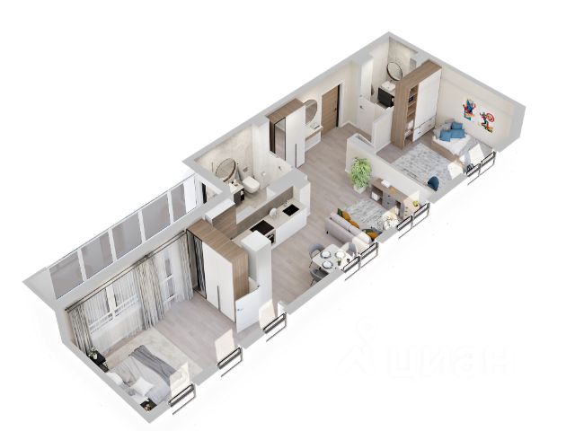 3D-модель в изображениях представлена исключительно в ознакомительных целях. Изображённые отделка, мебель, техника, предметы интерьера, декора и иные элементы оформления квартиры являются иллюстрацией возможного интерьера и не входят в состав приобретаемой квартиры. Подробности в отделе продаж.