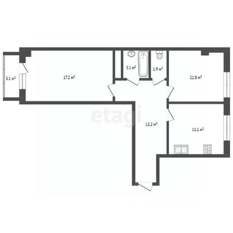Зонирование: Две изолированные жилые зоны (комнаты 12 м² и 6 м²), компактная и удобная кухня 4,6 м², совмещенный санузел. Каждый квадратный метр полезной площади работает на вас.