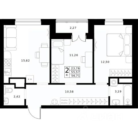 Компактная и вместительная двухкомнатная квартира в 25-этажной секции ЖК "N1 Первый дом в Нижнем" Особенности планировки: Площадь 55,9м² Большая кухня-гостиная 20,4м² Функциональная спальня 16,2м² с выходом на теплую лоджию и в гардеробную Живите в географическом центре города, в минуте от метро Чкаловская. Гуляйте каждый день в парке им.1 Мая. Создавайте квартиру своей мечты в современном доме бизнес-класса!