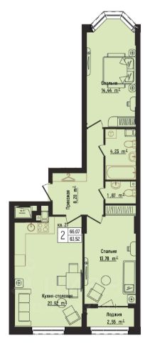 Квартира общей площадью 65 кв.м , с тёплой лоджией 4,48 кв.м,, располагается на 14 этаже 19-этажного монолитно-кирпичного дома. Функциональная планировка современного стандарта 2+ делают эту квартиру отличным сочетанием цена-качество. Большая и светлая гостиная площадью 19,49 кв.м, объединенная с кухонной зоной, две изолированные комнаты - 11,99 и 19,49 кв.м., два санузла. Квартира продается с предчистовой отделкой white box - выполнены стяжки полов, оштукатурены стены, выполнена разводка системы электроснабжения, установлены розетки, установлены все необходимые приборы учета. Это значит, что все черновые работы выполнены, вам нужно только воплотить свои дизайнерские мечты по своему вкусу.