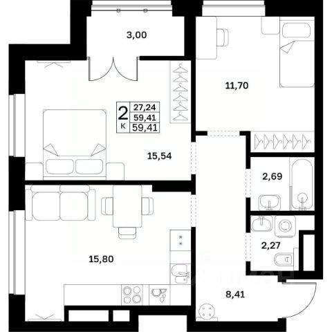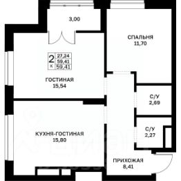 Продаётся 2-комнатная квартира в строящемся доме (дом 8), срок сдачи: I-кв. 2027, общей площадью 59.41 кв.м., на 24 этаже. Новый жилой комплекс "Мёд" от застройщика "СЗ Андор" расположен по адресу Нижний Новгород, Украинская улица.