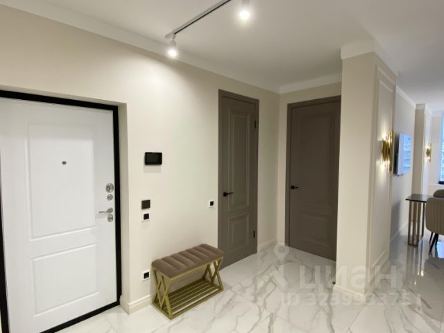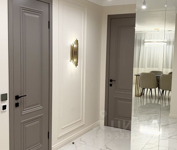 В квартире выполнен евроремонт по дизайн-проекту из дорогих материалов: встроенный кухонный гарнитур со встроенным холодильником, посудомоечной машиной, индукционной варочной поверхностью и духовым шкафом.