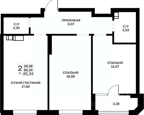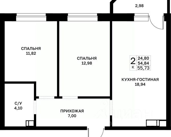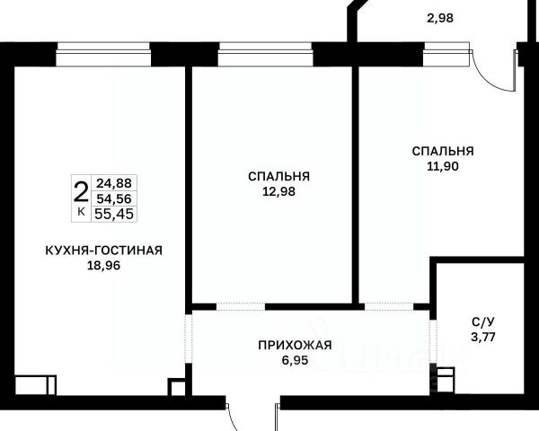• ✅ Минимальная площадь: 55,4 м²