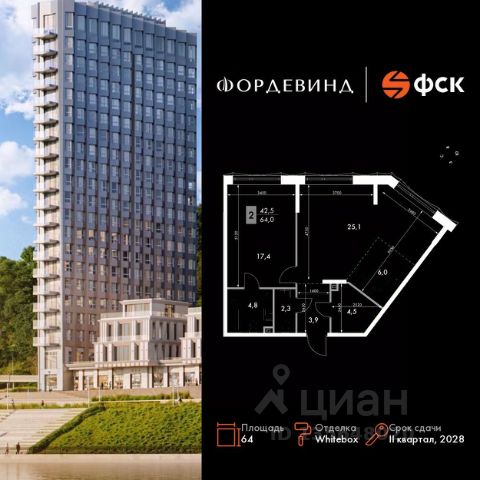Дом монолитный, многоподъездный, переменной этажности, от 11 до 19 этажей. Квартира находится в 7-й секции высотой 11 этажей в корпусе 1. На этаже 5 квартир. В подъезде 1 пассажирский и 1 грузовой лифт. Окончание строительства - 1 квартал 2028 года. Оформление сделки по договору долевого участия.