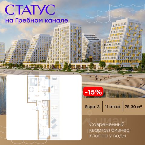 Продается 2-комн. квартира на 2-м этаже в строящемся проекте бизнес-класса СТАТУС на Гребном канале. Общая площадь лота составляет 55,20 кв. м, из которых 27,17 кв. м отведено под жилую и 14,90 кв. м под кухонную зону. Номер квартиры - 472. Преимущества квартиры: евро-трехкомнатная квартира; угловая; много окон; вид на улицу - Современная набережная с философией Slow-life, зонами медитации и амфитеатром у воды - Гастрокластер с акцентом на здоровое питание - Общественный центр со спортзалом, бассейном и супермаркетом - Детский плейхаб с нетиповыми площадками - Близость к центру города - Отапливаемые паркинги - Дизайнерское гранд-лобби со вторым светом и клубом резидентов - Приватные дворы на стилобате - Окна в пол - Умные замки с возможностью открытия двери с помощью отпечатка пальца или кода СТАТУС на Гребном канале — это курортный Нижний. Современные кварталы премиум-класса у воды недалеко от центра города с философией slow-life. Концентрация на настоящем, забота о собственном физическом и ментальном здоровье, соблюдение баланса между трудом и отдыхом. Инфраструктура для активной и здоровой жизни, модный гастрокластер с особыми программами питания. Маловысотные дома с видами на реку и с фасадами в виде парусов. А рядом - многофункциональная набережная с променадом, зонами для медитации и йоги, упирающаяся в любимейшую пляжную зону всех нижегородцев и во все века прекрасная река. Гармоничная среда, дающая возможность услышать свой внутренний голос, понять свои истинные желания и чувства. СТАТУС на Гребном канале — это семейный Нижний. Два детских сада, школа, нетиповые детские площадки для разных возрастов. Экологичные материалы. Безопасность и видеонаблюдение. Простор для прогулок на многоуровневой набережной, велодорожки и релакс-зоны. Сложно представить лучше жизнь ваших детей. СТАТУС на Гребном канале это эксклюзивный Нижний с современной средой, в которой решения и внимание к деталям подчеркивают высокий статус и индивидуальность жителей. Приватные дворы на стилобатах, безбарьерная среда, IP домофоны, просмотр камер с домофона через мобильное приложение, системы "Умный ЖК" и отапливаемые паркинги. Дизайнерское гранд-лобби со вторым светом и клубом резидентов. Общественный центр сj спортзалом, бассейном, супермаркетом, кафе и рестораном. СТАТУС на Гребном канале - это не координаты на карте, а внутреннее состояние. Идеальным оно становится тогда, когда все вокруг работает на ваше благополучие. СТАТУС на Гребном канале вырос в месте, на набережной Гребного канала, где Волга простирается вдоль горизонта, а из окон будущих резидентов открывается панорама на великолепие зеленых зон. А главное — всего 9 минут до центра Нижнего Новгорода и Кремля на авто. Редкое сочетание близости к деловой жизни города в атмосфере уединенного курорта. Рядом 2 остановки общественного транспорта, вертолетная площадка и речной вокзал. До международного аэропорта им. Чкалова 50 мин на авто. Цена указана при 100% оплате или стандартной ипотеке. Узнайте подр