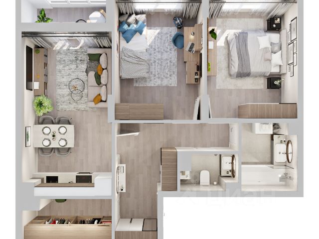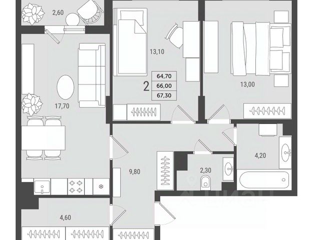 Внимание! Открылись продажи квартир с потолками 3,3 м на 9 и 10 этажах. Сдача дома уже в этом году. Ипотека от 6%, трейд-ин, рассрочка, отсрочка платежа с первым взносом 0 р. Подробности в отделе продаж. Стоимость квартиры указана по акции "Финальная выгода до 1,2 млн руб.". Действует при покупке квартиры в ипотеку или при 100% оплате. Подробности в отделе продаж. В квартире будет выполнена улучшенная предчистовая отделка white box +. 2-комнатная квартира евроформата 63,67 кв.м. в ЖК "2Д Федосеенко". Выделим основные преимущества планировочного решения: Просторная кухня-гостиная 20,8 кв.м с выходом на балкон. Зона приготовления расположена в отдельной "нише", в остальной части пространства поместится как место для приема пищи, так и зона отдыха; В одной из спален есть отдельная гардеробная комната (3,7 кв.м). Нет необходимости ставить шкафы, которые будут "съедать" пространство; На входе в квартиру запроектирована ниша под гардероб. Семейный жилой комплекс 2Д Федосеенко представляет собой 10-этажный трехподъездный дом комфорт-класса с подземным паркингом. На первом этаже откроются кафе, магазины и другие объекты необходимой инфраструктуры. В приватном и безопасном дворе без машин будут расположены детские площадки, спортивная зона, уединенное пространство для отдыха взрослых. Разноуровневое освещение и комплексное озеленение подарит ощущение уюта и спокойствия. - Современная архитектура дома от проектной компании ГОРПРО; - Европланировки с мастер-спальнями, отдельными гардеробными, увеличенной площадью остекления; - Выводы радиаторов отопления из стены (удобно мыть пол, нет стояков около окон); - Дизайнерская отделка подъездов; - Высокие потолки: со 2 по 8 этаж - 2,7 м (от чистового пола до перекрытия потолка), на 9 и 10 этаже - 3,3 м (от чистового пола до перекрытия потолка); - Корзины для кондиционеров, чтобы сохранить статусный вид фасада; - Закрытая территория внутреннего двора "без машин" с системой контроля доступа и видеонаблюдением; - Детские площадки для разных возрастов; Поблизости есть все, что необходимо для комфортной жизни: школы 81, 93, детские сады 98, 211, остановка общественного транспорта "Достоевского", Сормовский парк, магазины продуктов, аптеки, пункты выдачи заказов крупнейших маркетплейсов. 3D-модель в изображениях представлена исключительно в ознакомительных целях. Изображённые отделка, мебель, техника, предметы интерьера, декора и иные элементы оформления квартиры являются иллюстрацией возможного интерьера и не входят в состав приобретаемой квартиры. Подробности в отделе продаж.