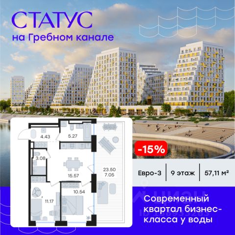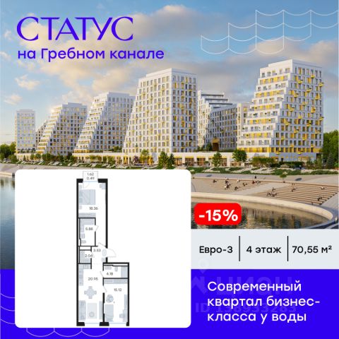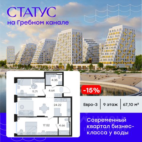 Продается 2-комн. квартира на 2-м этаже в строящемся проекте бизнес-класса СТАТУС на Гребном канале. Общая площадь лота составляет 63,43 кв. м, из которых 25,17 кв. м отведено под жилую и 21,23 кв. м под кухонную зону. Номер квартиры - 2. Преимущества квартиры: евро-трехкомнатная квартира; вид во двор и на реку; мастер-спальня - Современная набережная с философией Slow-life, зонами медитации и амфитеатром у воды - Гастрокластер с акцентом на здоровое питание - Общественный центр со спортзалом, бассейном и супермаркетом - Детский плейхаб с нетиповыми площадками - Близость к центру города - Отапливаемые паркинги - Дизайнерское гранд-лобби со вторым светом и клубом резидентов - Приватные дворы на стилобате - Окна в пол - Умные замки с возможностью открытия двери с помощью отпечатка пальца или кода СТАТУС на Гребном канале — это курортный Нижний. Современные кварталы премиум-класса у воды недалеко от центра города с философией slow-life. Концентрация на настоящем, забота о собственном физическом и ментальном здоровье, соблюдение баланса между трудом и отдыхом. Инфраструктура для активной и здоровой жизни, модный гастрокластер с особыми программами питания. Маловысотные дома с видами на реку и с фасадами в виде парусов. А рядом - многофункциональная набережная с променадом, зонами для медитации и йоги, упирающаяся в любимейшую пляжную зону всех нижегородцев и во все века прекрасная река. Гармоничная среда, дающая возможность услышать свой внутренний голос, понять свои истинные желания и чувства. СТАТУС на Гребном канале — это семейный Нижний. Два детских сада, школа, нетиповые детские площадки для разных возрастов. Экологичные материалы. Безопасность и видеонаблюдение. Простор для прогулок на многоуровневой набережной, велодорожки и релакс-зоны. Сложно представить лучше жизнь ваших детей. СТАТУС на Гребном канале это эксклюзивный Нижний с современной средой, в которой решения и внимание к деталям подчеркивают высокий статус и индивидуальность жителей. Приватные дворы на стилобатах, безбарьерная среда, IP домофоны, просмотр камер с домофона через мобильное приложение, системы "Умный ЖК" и отапливаемые паркинги. Дизайнерское гранд-лобби со вторым светом и клубом резидентов. Общественный центр сj спортзалом, бассейном, супермаркетом, кафе и рестораном. СТАТУС на Гребном канале - это не координаты на карте, а внутреннее состояние. Идеальным оно становится тогда, когда все вокруг работает на ваше благополучие. СТАТУС на Гребном канале вырос в месте, на набережной Гребного канала, где Волга простирается вдоль горизонта, а из окон будущих резидентов открывается панорама на великолепие зеленых зон. А главное — всего 9 минут до центра Нижнего Новгорода и Кремля на авто. Редкое сочетание близости к деловой жизни города в атмосфере уединенного курорта. Рядом 2 остановки общественного транспорта, вертолетная площадка и речной вокзал. До международного аэропорта им. Чкалова 50 мин на авто. Цена указана при 100% оплате или стандартной ипотеке. Узнайте по