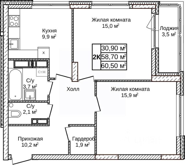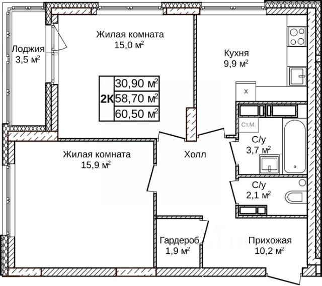 Продаётся 2-комнатная квартира в строящемся доме (Дом 1), срок сдачи: IV-кв. 2027, общей площадью 60.5 кв.м., на 2 этаже. Новый жилой комплекс "по пр.Гагарина" от застройщика "СЗ НО Дирекция по строительству" расположен по адресу: городской округ Нижний Новгород, деревня Ольгино