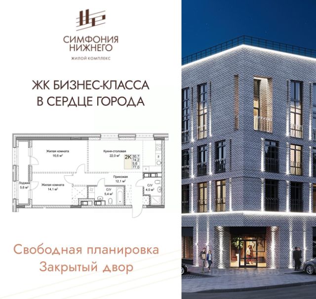 Двухкомнатная квартира от застройщика в ЖК "Симфония Нижнего" на 2 этаже. Квартира без отделки, полностью готова к ремонту. Общая площадь: 67.5 кв.м., жилая: 27.2 кв.м., площадь просторной кухни-столовой: 16.6 кв.м. Квартира угловая, идеально подойдет любителям тишины и панорамных видов. В квартире одна лоджия, два совмещенных санузла. Высота потолков 3.0 м. Дом монолитный, многоподъездный, переменной этажности, от 5 до 9 этажей. Квартира находится в 1-й секции высотой 9 этажей в корпусе 1. На этаже 4 квартиры. В подъезде 1 пассажирский и 1 грузовой лифт. Окончание строительства - 3 квартал 2027 года. Оформление сделки по договору долевого участия. Продолжение застройки в историческом центре города - в границах улиц Ильинская и Новая. Локация с пешеходной доступностью к культурно-развлекательной, торговой, транспортной и социальной инфраструктуре. Вторая очередь жилого комплекса представлена двумя домами, имеющими интересное архитектурное решение. Например, дом 1 выглядит как несколько строений, объединенных общим основанием. Минимализм фасадов, благородные цвета, декоративная подсветка внешний облик определяет характер ЖК: современный, эстетичный, респектабельный. Вся территория продумана до мелочей: закрытый двор только для резидентов, ландшафтный дизайн, зоны отдыха. Здесь представлены квартиры свободной планировки без стен и перегородок, а значит вы сами создаете конфигурацию своего жилого пространства. Особое внимание эксклюзивным лотам: двухуровневые квартиры, квартиры с видом на историческую застройку и собственной террасой. Жители смогут управлять домашними системами со смартфона, а IP-домофоны будут оснащены функциями распознавания лиц и видеонаблюдения. Места общего пользования служат созданию настроения комфорта и уюта уже с входной группы. Холлы и подъезды выполнены по дизайн проекту и подчеркивают высокий статус дома. Для владельцев авто предусмотрен подземный паркинг, оснащенный доступом из лифта и местами для зарядки электромобилей. #Z6l6VS