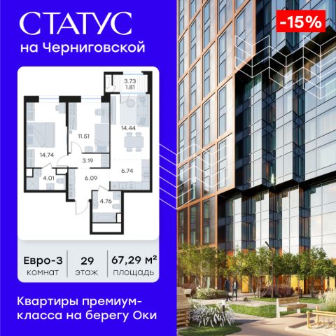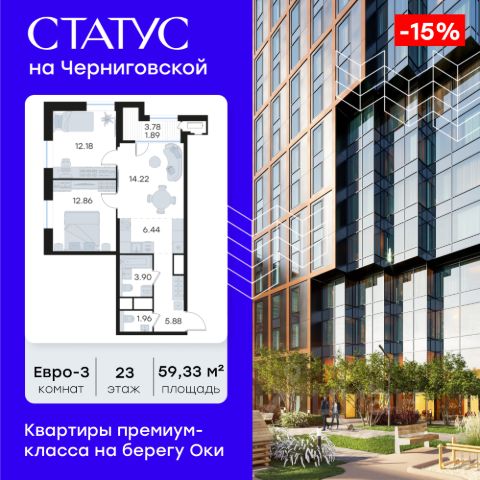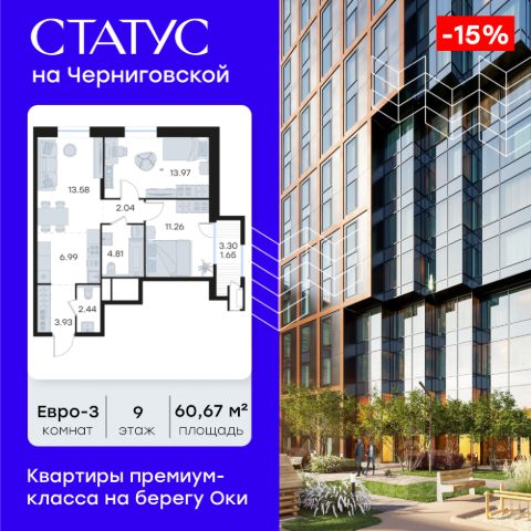 Продается 2-комн. квартира на 4-м этаже в строящемся проекте премиум-класса СТАТУС на Черниговской. Общая площадь лота составляет 60,14 кв. м, из которых 24,92 кв. м отведено под жилую и 20,41 кв. м под кухонную зону. Номер квартиры - 248. Преимущества квартиры: - Квартиры премиум-класса у воды - Первая береговая линия. Изумительные виды на Стрелку и слияние Оки и Волги - Панорамные окна во всех квартирах - 11 минут до Кремля, 5 мин до Нижневолжской набережной - Дизайнерские лобби со вторым светом - Двухуровневый отапливаемый паркинг на 350 м\м - Приватный благоустроенный двор с видеонаблюдением только для резидентов - Современные детские площадки, зоны спокойного отдыха, зона для занятия спортом, зеленые кабинеты на свежем воздухе - Детские сады и школы в шаговой доступности - Собственный комьюнити-центр с коворкингом, детской комнатой, залом для фитнеса и кофе-поинтом. - Умный Дом и Умная Квартира - Ресторанный кластер в ЖК - Келлеры для хранения - Коммерческие помещения на 1 этаже СТАТУС на Черниговской - новый жилой комплекс премиум-класса в историческом центре Нижнего Новгорода, в котором объединились лаконичность архитектурной мысли, технологичность решений и внимание к деталям, присущее всем проектам компании GloraX. Проект для рационалистов, придающих большое внимание собственному комфорту и современным технологиям СТАТУС на Черниговской - это высшая форма Нижнего Новгорода. Инновационные решения и сервисы, закрытые дворы в стилобате с уютными детскими площадками, гастро-кластер, комьюнити-центр и дизайнерские лобби здесь все создано для максимального комфорта каждого жителя. Приватное пространство внутреннего двора с тактильными тропами, с собственным садами, камерными зелеными кабинетами для работы и отдыха, детскими площадками для разных возрастов и местами для занятия спортом создает неповторимую атмосферу безмятежности и спокойствия. СТАТУС на Черниговской возвращает набережной и пространству вокруг исторический статус, привлекая тех, кто готов развиваться вместе с городом. Дорога до любимейшего променада нижегородцев Нижне-Волжской набережной займет всего 10 минут пешком, до ближайшей станции метро Горьковская 10 минут на автомобиле. Попасть на главную площадь города, Чкаловскую лестницу и в Кремль на машине за 11 мин? Легко! И всего 48 минут займет путь до международного аэропорта имени Чкалова, что станет неоспоримым преимуществом для тех, кто часто летает в командировки. В проекте СТАТУС на Черниговской доступен широкий выбор планировочных решений от небольших уютных студий площадью 28,3 м2 до двухуровневых квартир с террасами площадью до 188,7 м2 и потрясающими видами на Нижегородские закаты. Все квартиры сдаются в черновой отделке, что позволяет нашим резидентам воплотить в своем доме любую дизайнерскую идею. Цена указана при 100% оплате или стандартной ипотеке. Узнайте подробности в Отделе продаж.