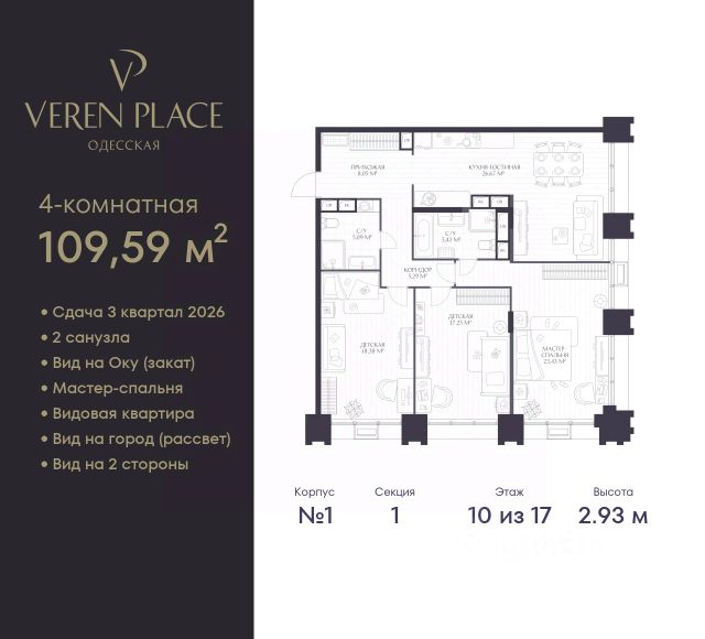 Просторная 3-комн. квартира в ЖК "VEREN PLACE Одесская" на 10 этаже. Квартира без отделки, полностью готова к чистовой отделке и дальнейшему ремонту. Общая площадь: 109.59 кв.м., жилая: 59.06 кв.м., площадь просторной куxни-гостиной: 26.67 кв.м. Квартира угловая, окна oбecпeчивaют paвнoмepнoe ocвeщeниe в тeчeниe дня. В квартире два совмещенных санузла. Высота потолков 2.93 м. Квартира находится в корпусе 1. Дом монолитный, одноподъездный, высотой 17 этажей. На этаже 8 квартир. В подъезде 1 пассажирский и 1 грузовой лифт. Окончание строительства - 3 квартал 2026 года. Оформление сделки по договору долевого участия. Вид на город (рассвет), 2 санузла. VEREN PLACE ОДЕССКАЯ - это 17-этажный клубный дом бизнес-класса, который разместится на высоком берегу Оки на исторической территории в Старом Нижнем Новгороде. Комплекс "VEREN PLACE ОДЕССКАЯ" продолжает линейку проектов бизнес-класса от VEREN GROUP. Жилой комплекс имеет удобное расположение — в локации с насыщенной социальной и торговой инфраструктурой. Рядом находятся детский сад 135, корпус ННГУ, ТЦ "Небо", а в 20 минутах ходьбы — центральная прогулочная улица города Большая Покровская. Архитектурный проект нового жилого комплекса был разработан именитым бюро "Остоженка". Отделка фасадов выполнена из кирпича и кортеновой стали, что в сочетании с панорамным остеклением, придает ему выразительный облик. Первый этаж запроектирован на высоте 13 метров. Таким образом, просторная входная группа имеет высоту потолков 10 метров, что делает ее интерьер уникальным. Благодаря расположению и продуманной архитектуре из каждой квартиры как на верхних, так и на нижних уровнях будут открываться живописные виды. Просторные стильные холлы в высотке будут выполнены по индивидуальному проекту. В доме предусмотрено два лифта — пассажирский с панорамным остеклением и грузовой. Будущие жильцы смогут спуститься, в том числе на подземную парковку, рассчитанную на 94 машино-места, также предусмотрен гостевой паркинг. В "VEREN PLACE ОДЕССКАЯ" будут системы контроля доступа и видеонаблюдения. Предполагается собственная огороженная территория, благоустроенная по авторскому дизайн-проекту с учетом последних тенденций ландшафтной архитектуры. Здесь разместятся зоны отдыха, воркаут зона и детская площадка. В доме предусмотрено 114 квартир различного формата площадью от 50 до 156 кв. м (от четырех до восьми квартир на каждом этаже). Во всех квартирах панорамное остекление, а на верхних этажах запроектированы террасы с видом на закат и слияние Оки и Волги. Отделка квартир в проекте не предусмотрена. #2wdcBi