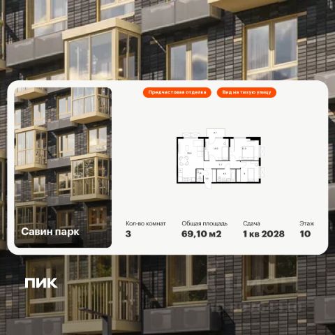 Продаётся 3-комн. квартира площадью 69,1 кв.м на 10 этаже 25 этажного дома (Корпус 8, Секция 1) проекта ПИК Савин парк. Светлый просторный подъезд на уровне земли, функциональная планировка, большие окна, предчистовая отделка. Жилой квартал "Савин парк" возводится в Кстовском муниципальном районе, рядом с Советским районом Нижнего Новгорода. До центра Нижнего Новгорода всего 20 минут на автомобиле, а до города Кстово - 18 минут. В этом проекте есть всё для комфортной жизни. Кроме жилых домов, проект включает два детских сада, один из которых уже строится, школу и многоуровневые надземные паркинги. На первых этажах откроются кафе, магазины и другие сервисы - чтобы купить кофе к завтраку или пиццу на ужин, можно будет просто спуститься на лифте. На подземном этаже появятся кладовые, в которых удобно хранить крупные и сезонные вещи. Чтобы жители квартала чувствовали простор и получали больше солнечного света, мы построим дома разной высоты. Во дворах появятся уютные парки с детскими площадками и местами для отдыха - здесь можно поболтать с соседями, почитать в тени или позаниматься йогой. Спортивные площадки мы разместим так, чтобы шум от них не мешал жителям. В квартирах тоже будет много солнечного света за счёт балконов и больших окон. Вы получите ключи от квартиры с уже готовой отделкой - можно заезжать и жить. На машине от "Савин парка" можно доехать до ТРЦ "МЕГА" за 7 минут, за 14 минут - до Анкудиновского леса, а за 20 - до "Щёлоковского хутора". Артикул 985684 (Застройщик ООО "СЗ "Экострой")