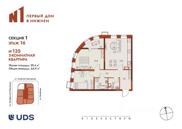 3-комнатная квартира — продуманная планировка для комфортной жизни всей семьи Умная организация пространства: • 62,2 м² общей площади с рациональной планировкой • 2 отдельных санузла — удобство для всех членов семьи Чем хороша такая планировка: Четкое зонирование — грязная зона отделена при входе Окна на 2 стороны света + 2 окна в кухне-гостиной — обилие естественного света 2 корзины для кондиционера — готовые решения для климатической техники Тёплая лоджия — дополнительное полезное пространство Окна во двор — тишина и приватность Встроенные ниши под шкафы в холле и спальне — экономия пространства Преимущества для жизни: Двор без машин — безопасные прогулки с детьми Солнце весь день благодаря двусторонней ориентации 2 санузла — утренние сборы без очередей Готовая инфраструктура в шаговой доступности Квартиры с такой продуманной планировкой встречаются редко — успевайте сделать выбор! Это не просто метры — это тщательно продуманное пространство для жизни.
