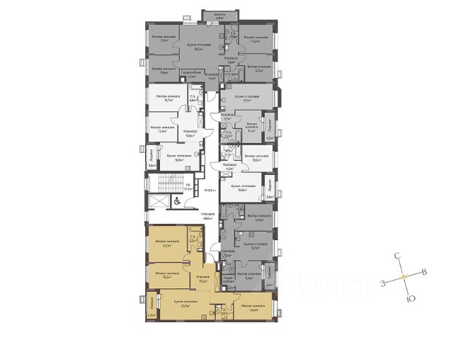 - светлая, теплая, на комфортном 6-м этаже, окна на 2 стороны — во двор и на соседний ЖК Лайнер;