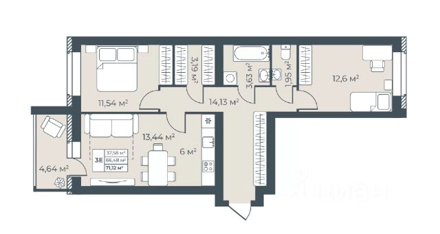• ✅ Минимальная площадь: 65,1 м²