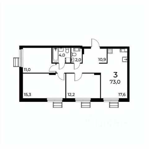 Отметим также отдельную гардеробную комнату 3,3 кв.м.