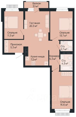 В санузлах, прихожей и зоне кухни везде тёплые полы, где плитка.