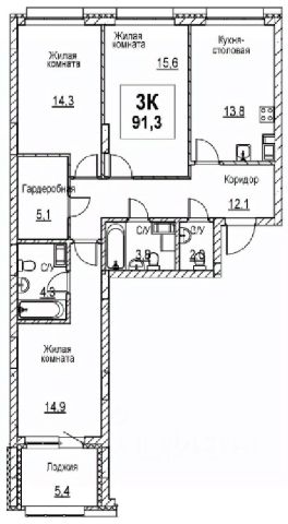 Продаётся 3-комнатная квартира в строящемся доме (Корпус 1), срок сдачи: I-кв. 2028, общей площадью 91.3 кв.м., на 3 этаже.