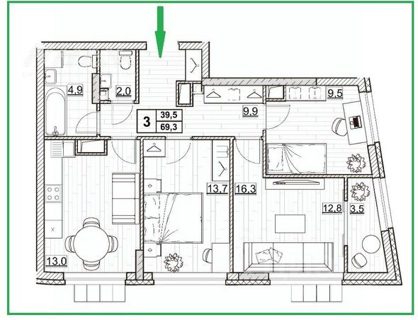 3-комн. квартира от застройщика с предчистовой отделкой в ЖК "Идель. Квартал на Сенной" на 4 этаже. Общая площадь: 99.8 кв.м., жилая: 43.6 кв.м., площадь просторной кухни-столовой: 25.2 кв.м. Квартира - распашонка, без проходных комнат, окна выходят на paзные стороны дома. В квартире один балкон и одна лоджия, два совмещенных санузла. Высота потолков 2.8 м.