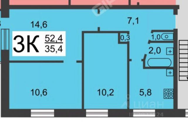 - комната 10,5 м² с пpоcторной лоджией