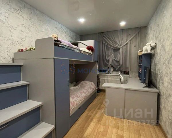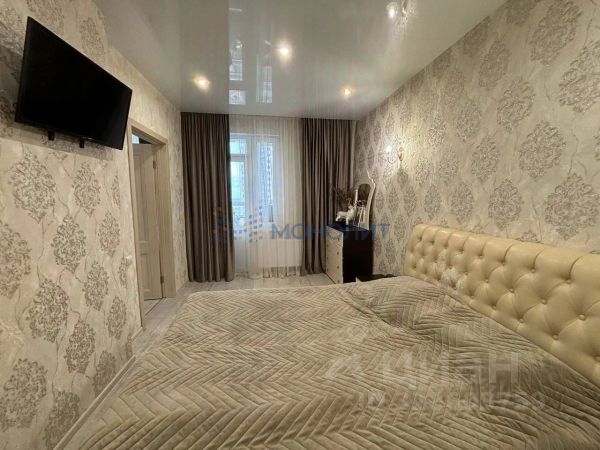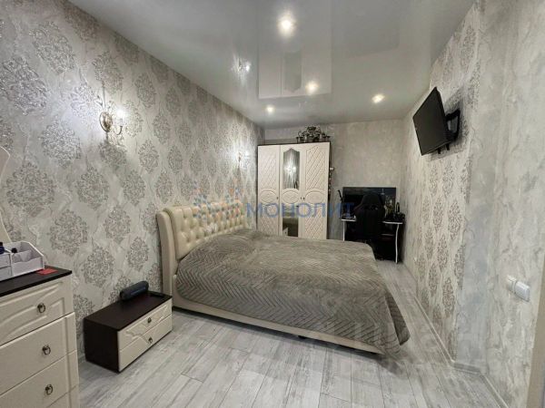 В квартире свежий качественный ремонт, не от застройщика: заменили ламинат на светлый более высокого класса, обои в классическом стиле, выполнена разводка электричества для дополнительных розеток и настенных светильников, натяжной потолок с нишей для гардин.