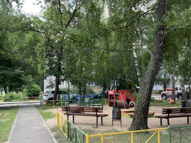 Тихий, благоустроенный зеленый двор детская площадка, парковка;