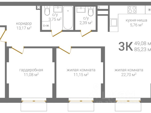 Продается квартира с готовой отделкой в строящемся доме жилого комплекса КМ Тимирязевский. Квартира будет готова к заселению: На кухне будет установлен кухонный гарнитур, варочная панель и духовой шкаф — всё, чтобы сразу готовить любимые блюда. В санузлах — полный комплект сантехники, включая раковину, подвесную тумбу, унитаз и акриловую ванну. Пол и стены выложены широкоформатным керамогранитом. В комнатах — белые обои под покраску, а на полу ламинат 32 класса В прихожей на полу износостойкий керамогранит. Дом введен в эксплуатацию, ключи скоро! О комплексе: КМ Тимирязевский расположен в Советском районе Нижнего Новгорода, всего в 10 минутах пешком от площади Лядова, площади Горького и улицы Белинского. Рядом находятся парк Пушкина, детские сады, поликлиники, торговые и фитнес-центры, магазины и кафе. КМ Тимирязевский это: Современная архитектура с фасадами в теплых натуральных оттенках Подземный двухуровневый паркинг с лифтами в жилую часть Коммерческие помещения на первых этажах Закрытая территория с продуманным благоустройством Просторные входные группы с авторским дизайном Детские и спортивные площадки Звоните, чтобы узнать больше и записаться на просмотр.